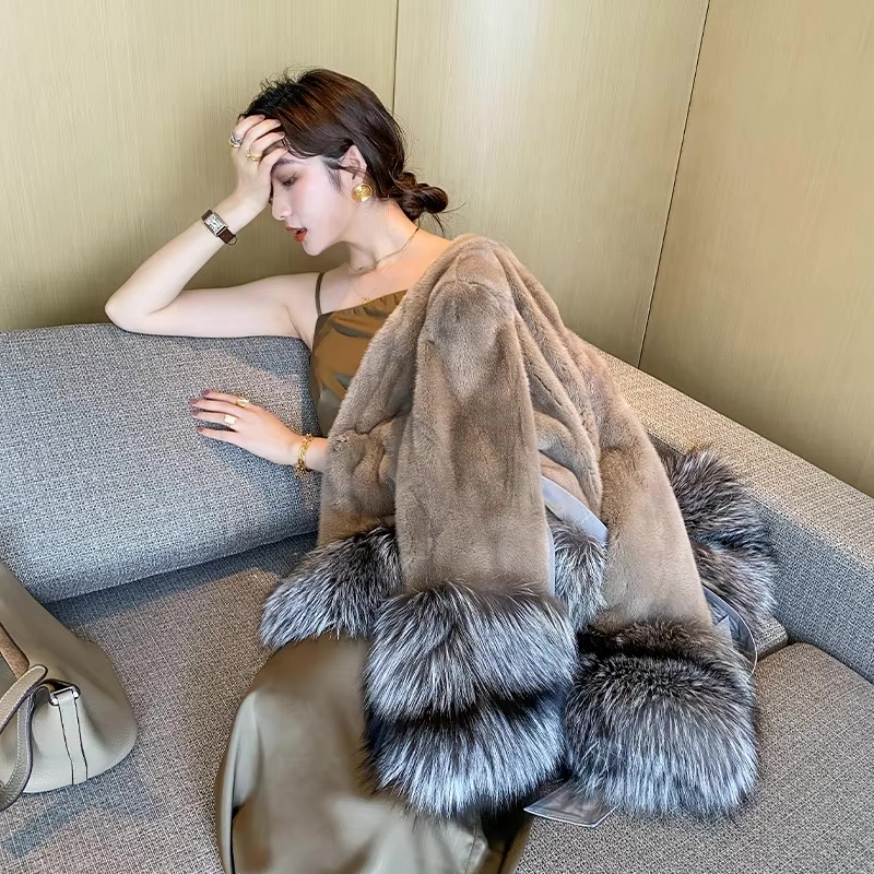 Women Brown Real Mink Fur Coat Jacket Sale Fashion Winter Women's Plus Size Jacket Luxury Medium Length Mink Fur Coats
