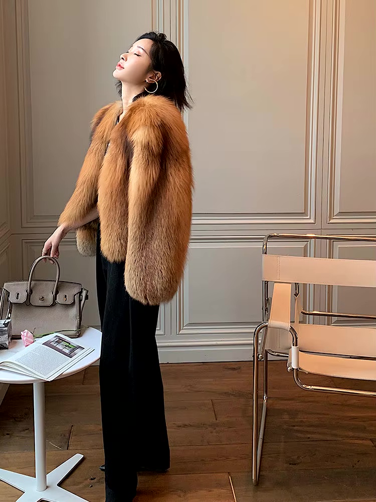 In winter 2022, the new imported whole-skin fox fur coat women's short red fox silver fox long-sleeved coat keeps warm