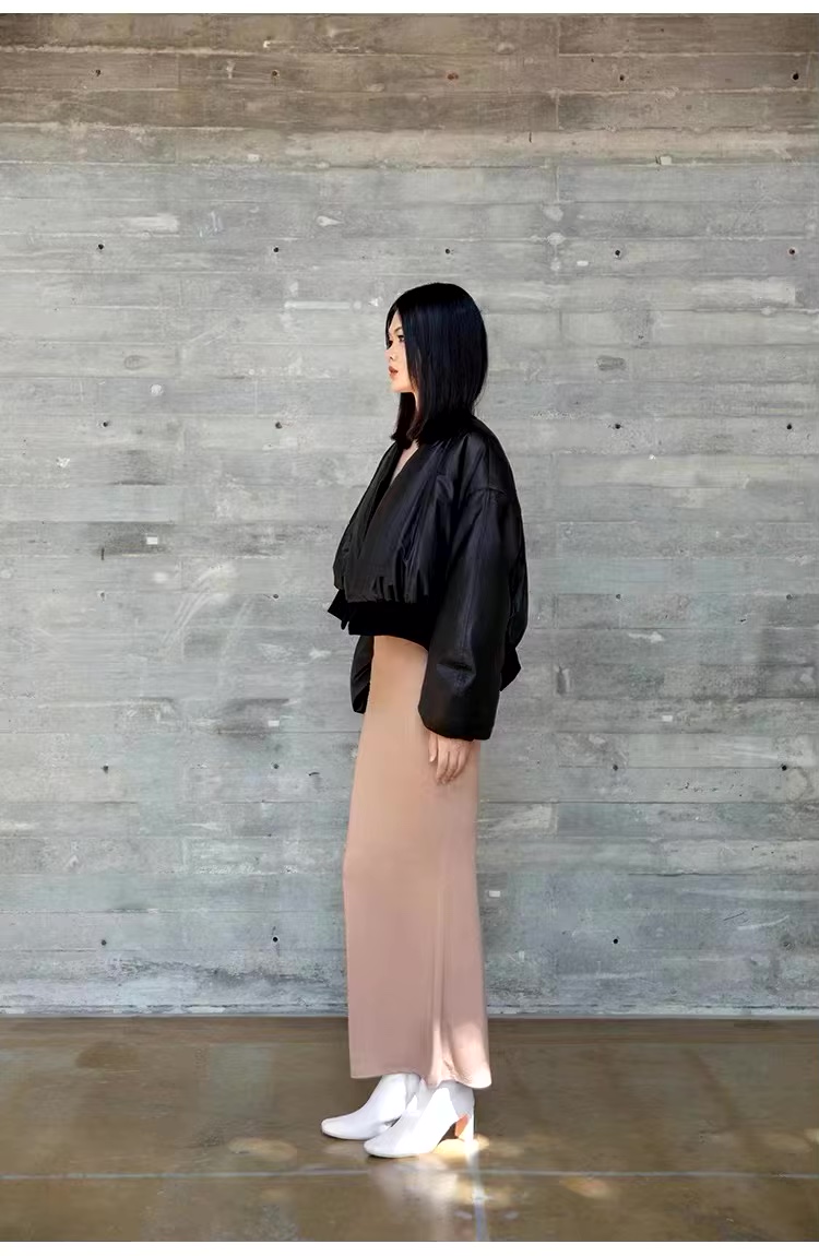 2024 hot sell items Women goose down genuine sheep leather short jacket