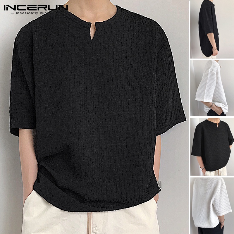 INCERUN Men Fashion V Collar Short Sleeve Solid Color Overiszed T-shirt