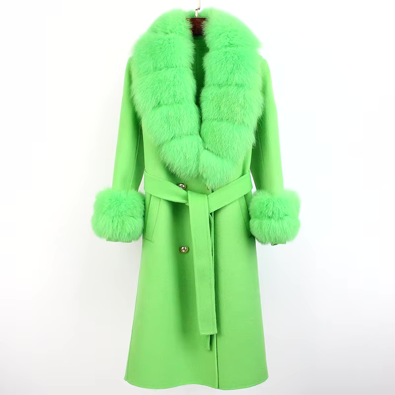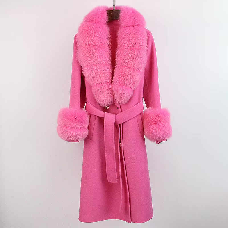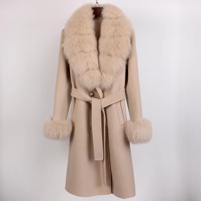 Women Winter Trend Real Fox Fur Collar Jacket Wool Cashmere Coat Real Fur Warm Overcoat Fashion Lady Big Fur Coat