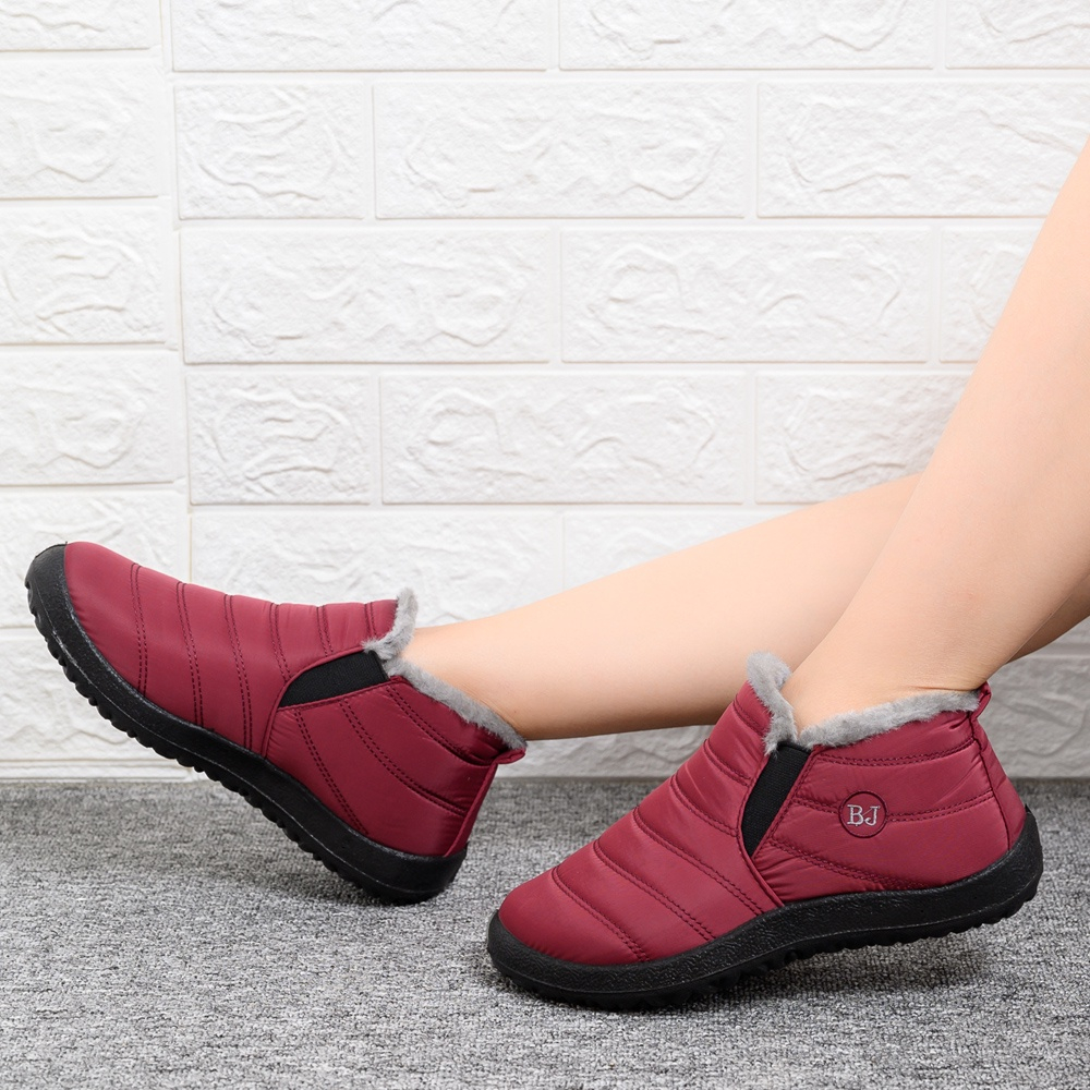Women's snow boots Warm plush leather ankle boots Winter women's smooth casual super light waterproof shoes