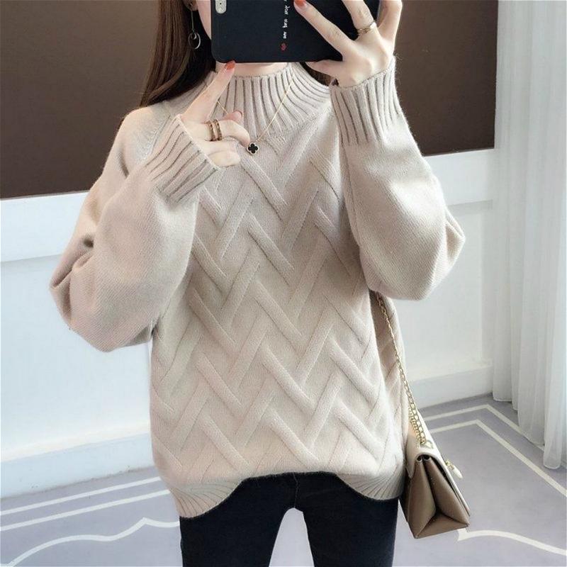 Autumn and Winter Women's Half Turtleneck Sweater Korean Version of The New Pullover Loose Student Bottoming Shirt